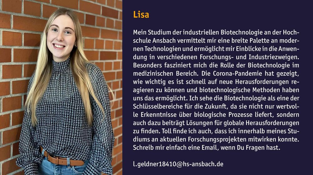 „Der Bachelor-Studiengang Industrielle Biotechnologie an der Hochschule Ansbach war für mich ein voller Erfolg."