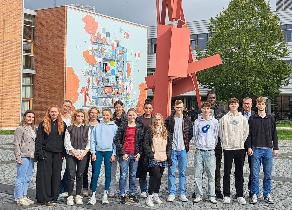 Es handelt sich hier um die neuen Spitzensportler aus dem Studiengang BIM, die wir am 07. Oktober begrüßen durften. Insgesamt konnten wir dieses Semester 18 Sportler einschreiben, fünf davon konnten aufgrund von Wettkämpfen oder Trainingslagern bei Semesterstart nicht vor Ort in Ansbach sein. Wir haben einen herrlich bunten Mix an Sportarten: von den klassischen Ballsportarten Fußball, Volleyball, Handball und Basketball, über Skisprung, Sportschießen, Radsport (Mountainbike), Leichtathletik (auch Gehen!), Tanzen, Segeln, Ringen, Triathlon bis hin zu Dressurreiten!