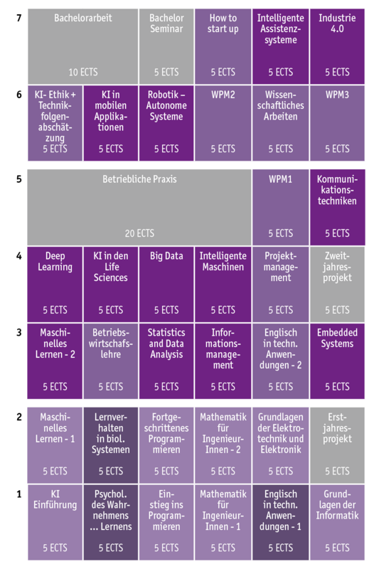 Der Bachelor-Studiengang „Künstliche Intelligenz und Kognitive Systeme“ umfasst insgesamt sieben Semester.