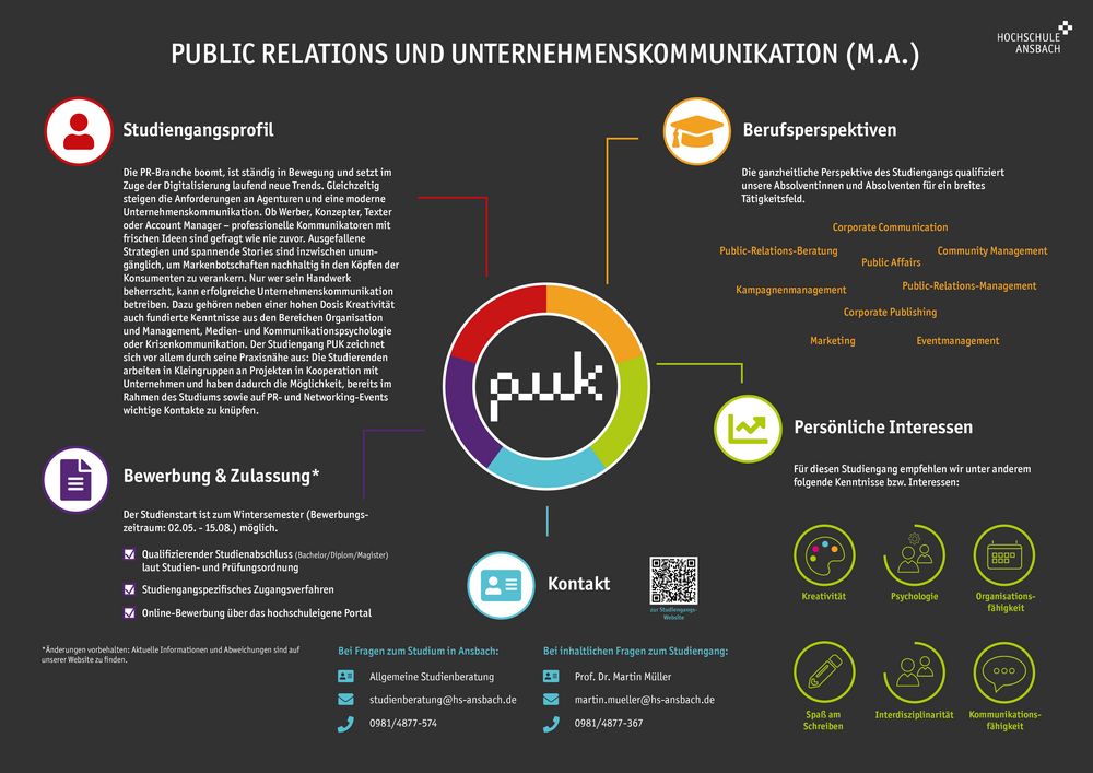 Der Masterstudiengang PUK steht für ein ausgewogenes Verhältnis von Theorie und Praxis sowie angewandter Forschung. Unsere Forschungsschwerpunkte liegen auf den Gebieten Gesundheitskommunikation, Krisenkommunikation, Personal Branding und Sportkommunikation. Für unsere Absolventen besteht die Möglichkeit zu promovieren, gerne auch berufsbegleitend.