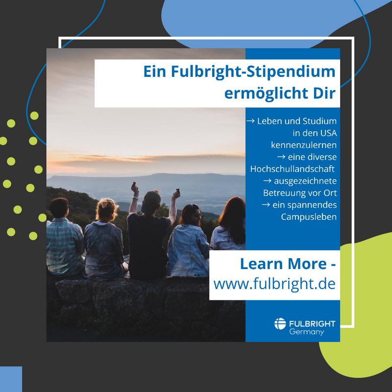 Studierende und Absolvent*innen von Fachhochschulen können sich bis zum 21. August 2022 für ein Vollzeit-Studium an einer US-Hochschule (Master-Niveau) bewerben. Das Stipendium richtet sich an Studierenden und Absolvent*innen aller Fachrichtungen. Stipendiat*innen werden mit bis zu 34.500 US-Dollar und der Aufnahme in das Fulbright-Netzwerk unterstützt.