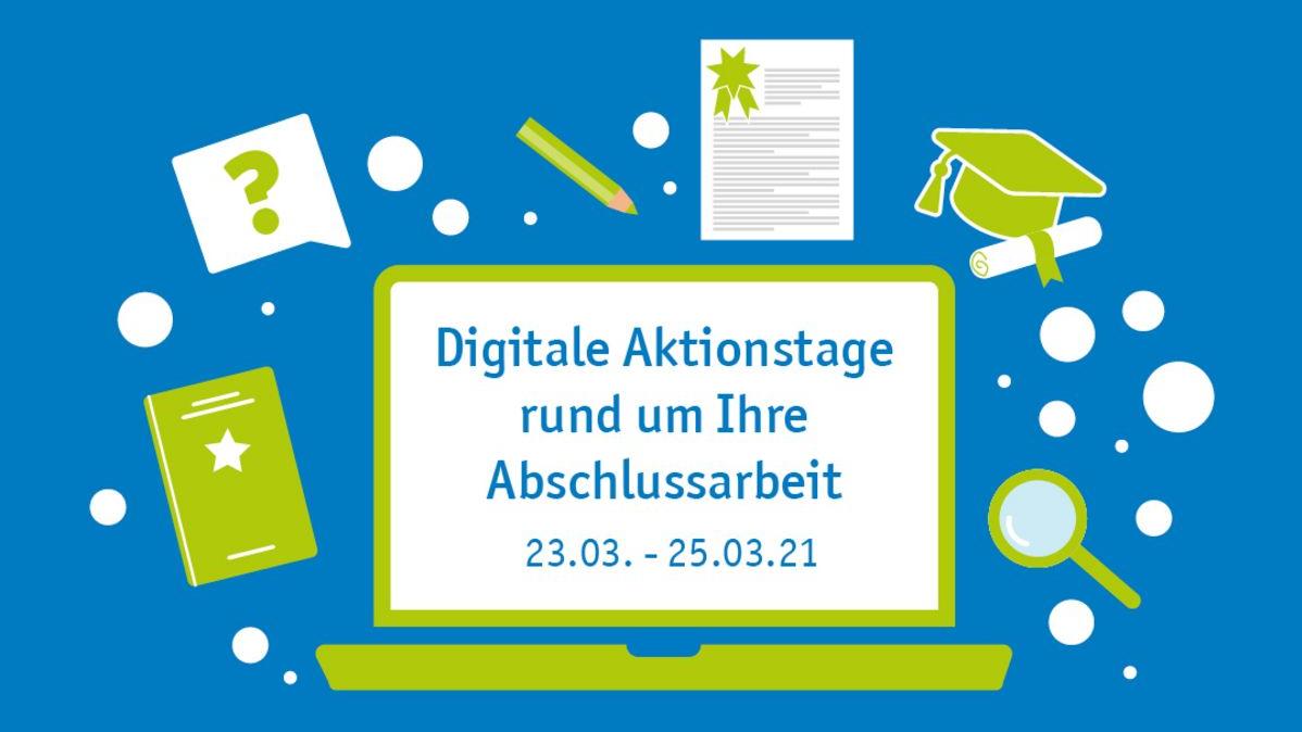 Vom 23.-25. März finden die digitalen Aktionstage rund um Ihre Abschlussarbeit von Bibliothek, Studierenden- und Career-Service statt.