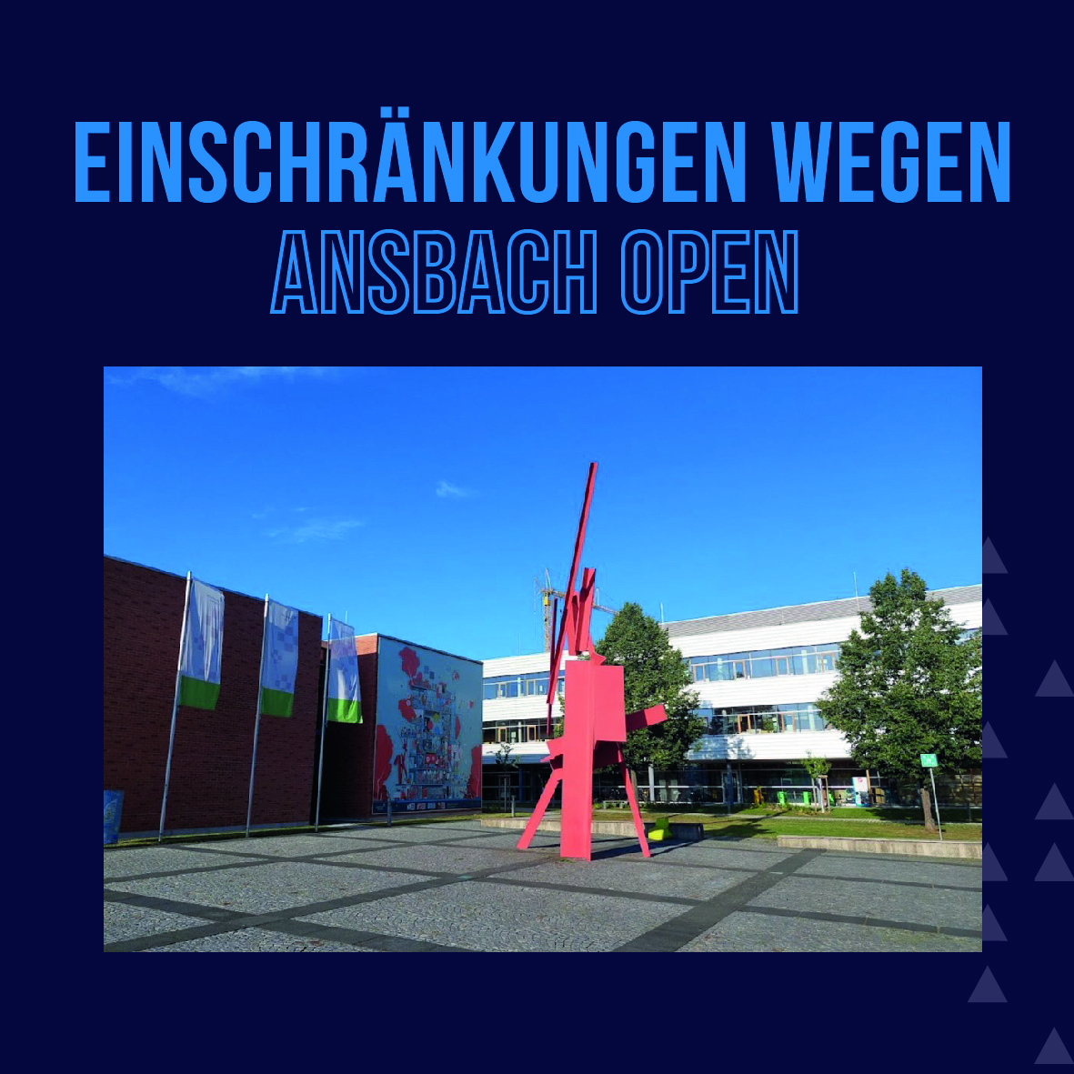Von Freitag bis Sonntag findet das Ansbach Open auf dem Campus der Hochschule statt. Deshalb kommt es zu folgenden Einschränkungen: