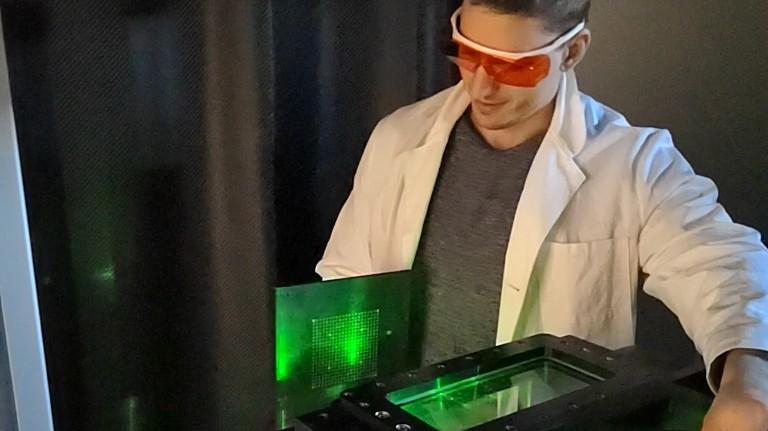 Im Bild: Der Preisträger Dennis Welsch am LDA-Prüfstand des Kompetenzzentrums Strömungssimulation
