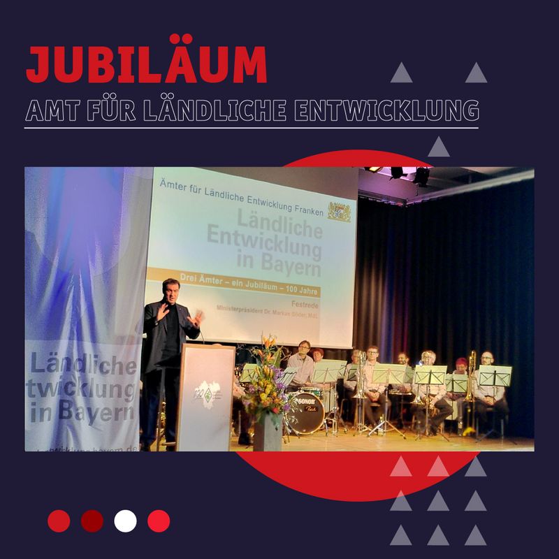 Am Donnerstag, 23. März, hat das Amt für Ländliche Entwicklung in Franken sein 100-jähriges Jubiläum gefeiert. Beim Festakt zu Gast war auch der bayerische Ministerpräsident Dr. Markus Söder, der die Festrede hielt.