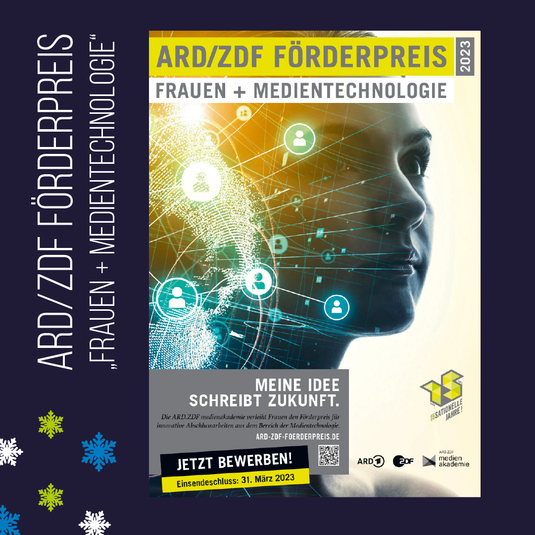 Dann bewerben Sie sich noch bis zum 31. März 2023 für den ARD/ZDF Förderpreis „Frauen + Medientechnologie“!