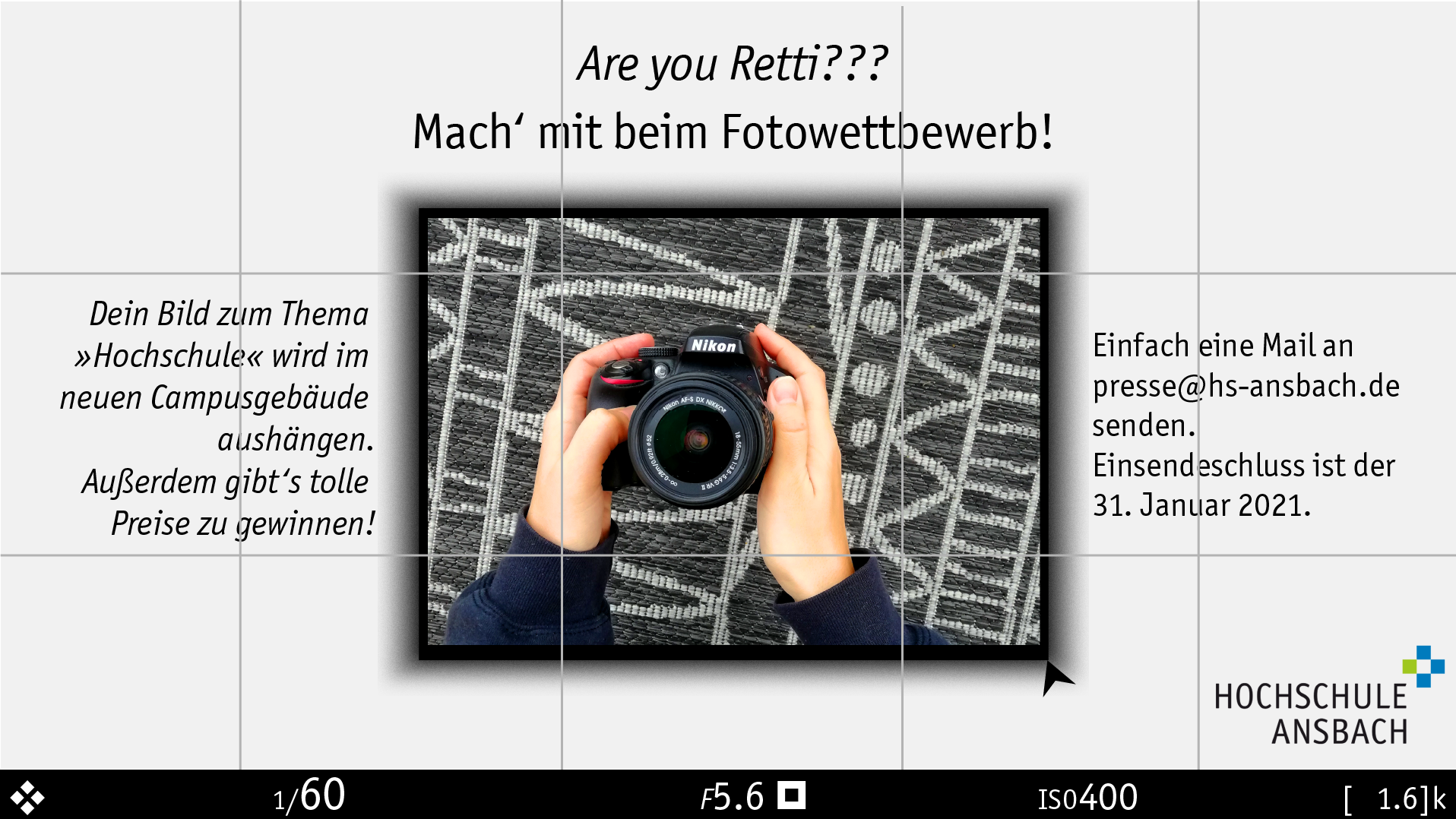 Dafür senden Sie uns Ihre schönsten Fotografien zum Thema "Hochschule" und bewundern Ihre Werke vielleicht schon bald an den Wänden in der Rettistraße.