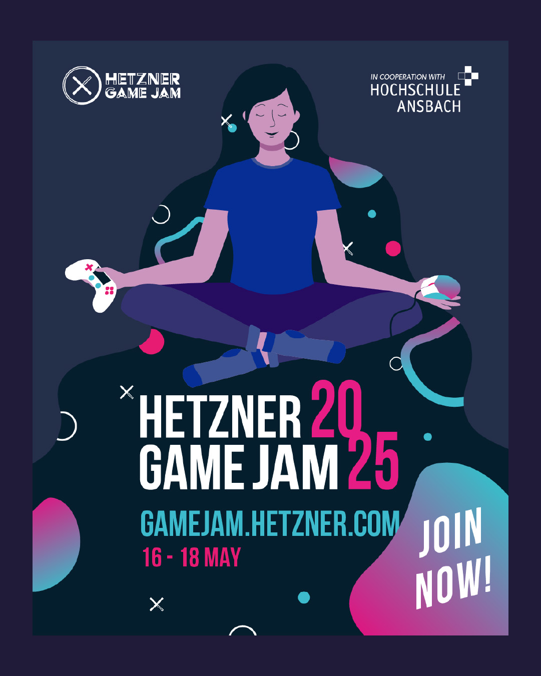 Vom 16. bis zum 18. Mai 2025 lädt die Hochschule Ansbach gemeinsam mit Hetzner zum großen Game Jam 2025 ein. Für ein ganzes Wochenende dreht sich alles ums Entwickeln, Tüfteln und Zocken. Innerhalb von nur 48 Stunden entsteht ein Spiel – von der ersten Idee bis zur spielbaren Version. Das Thema bleibt bis zum Start geheim und wird erst zum Auftakt am Freitagnachmittag bekannt gegeben.