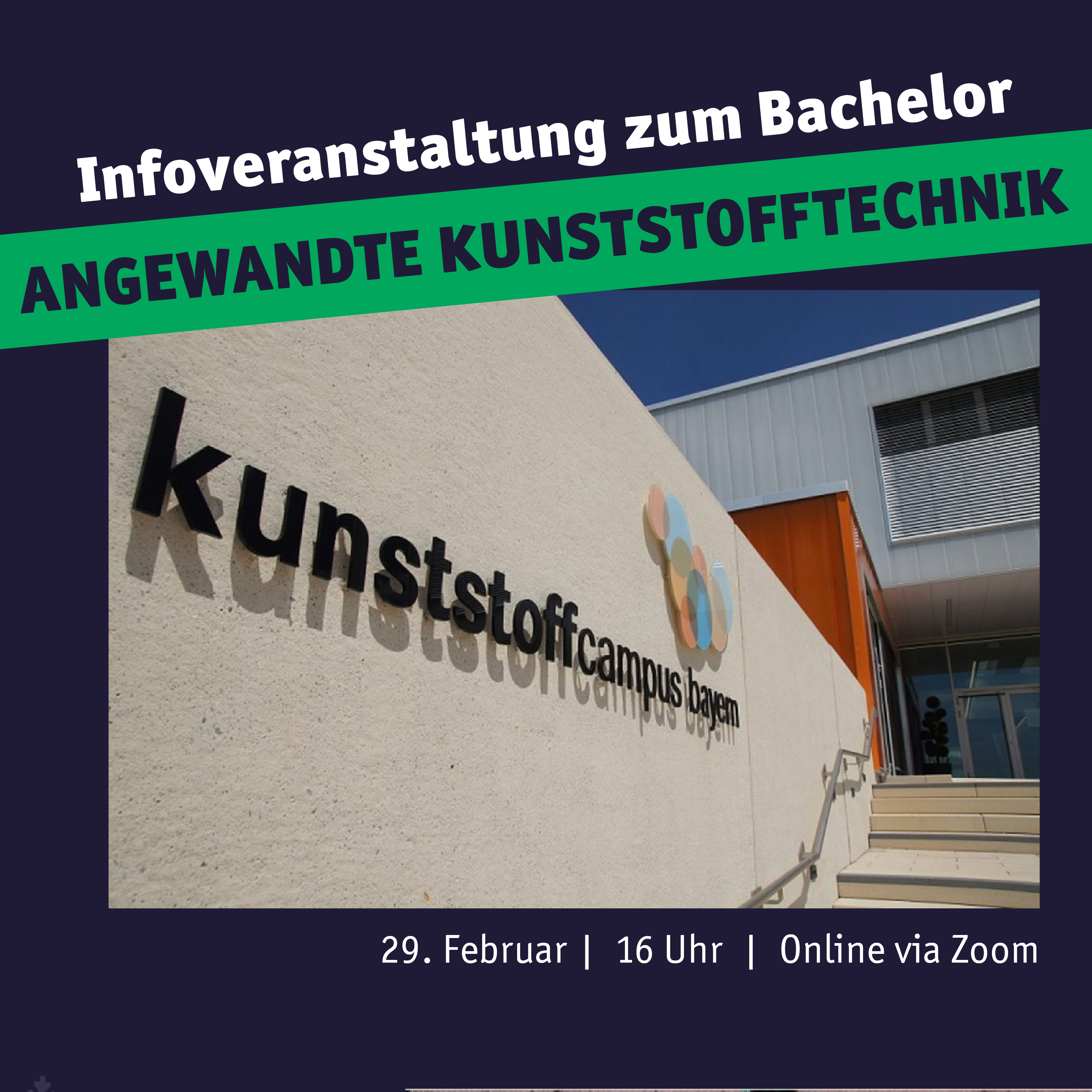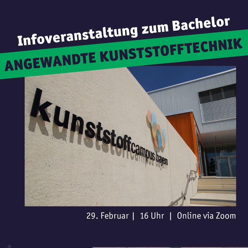 Am Donnerstag, 29. Februar, findet um 16 Uhr eine Infoveranstaltung zu unserem berufsbegleitenden Bachelorstudiengang Angewandte Kunststofftechnik (AKT) online via Zoom statt. Sie können sich über unser Webformular anmelden.