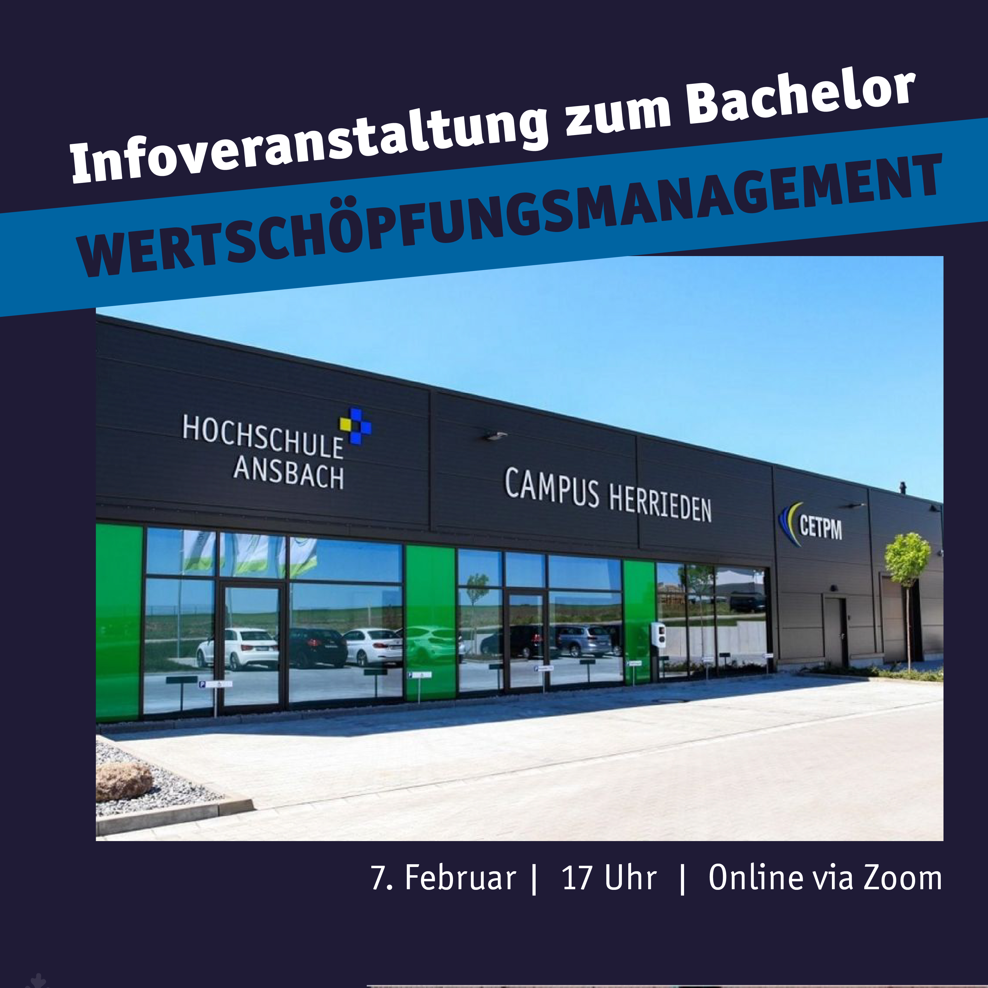 Am Mittwoch, 7. Februar, findet um 17 Uhr eine Informationsveranstaltung zu unserem berufsbegleitenden Bachelor of Arts Wertschöpfungsmanagement (WSM) online via Zoom statt. Die Anmeldung erfolgt über unser Webformular.
