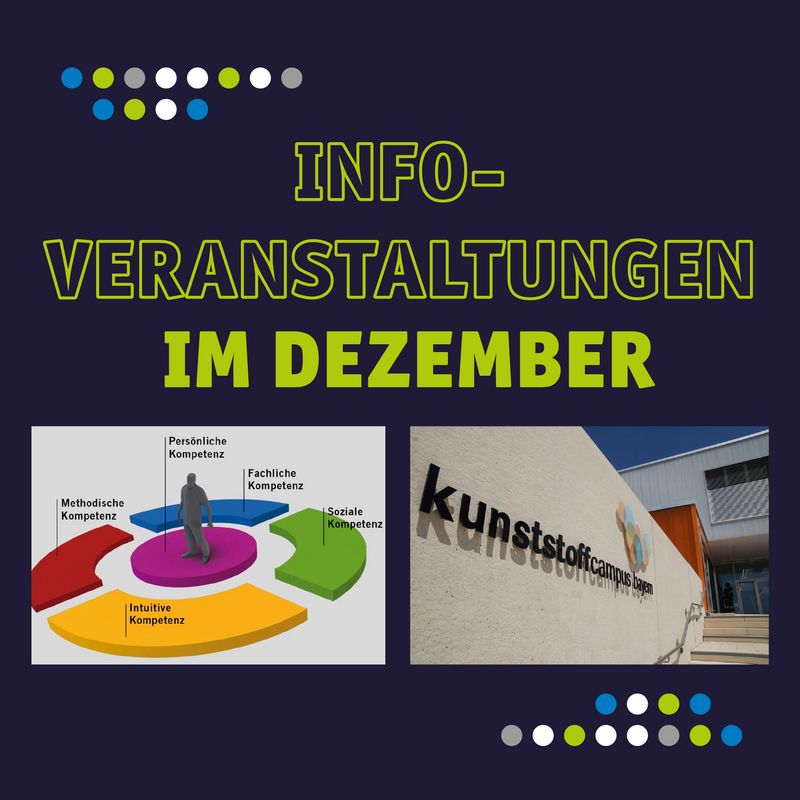 Am Montag, den 2. Dezember informiert der berufsbegleitende Bachelor Angewandte Kunststofftechnik (AKT) um 16 Uhr per Zoom über sein Angebot. Der Studiengang Angewandte Kunststofftechnik ist ein breit aufgestellter, praxisorientierter Studiengang. Er bereitet Sie auf einen vielfältigen Einsatz in der Kunststoffindustrie vor – sowohl als Führungskraft als auch als Fachexperte.