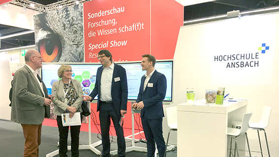 Auf dem Gemeinschaftsstand Forschung, die Wissen schaf(f)t zeigte das Kompetenzzentrum Industrielle Energieeffizienz (KIEff) der Hochschule Ansbach seine Forschungsergebnisse unter dem Motto Energieeffizienz durch Digitalisierung. Das an der Hochschule entwickelte und im industriellen Einsatz befindliche Prozessmonitoring-System wurde ebenso präsentiert wie die Arbeitsbereiche Virtuelle Inbetriebnahme, Digitale Störfallanalyse, Energieeffizienz durch intralogistische Maßnahmen und Optimierung des Wärmetransportes durch Strömungssimulation. Zahlreiche Besucher aus der Gießereibranche aber auch aus Universitäten, Hochschulen und von Fachverbänden konnten sich von der Relevanz und der Anwendungsnähe der am KIEff geleisteten Forschung überzeugen, so dass es in der Folge zu einer Reihe von Kooperationsgesprächen kam.