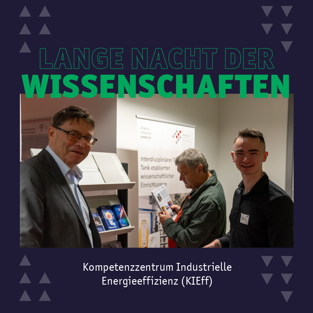 Als Teil des ENCN war auch das Kompetenzzentrum Industrielle Energieeffizienz (KIEff) der Hochschule Ansbach bei der Langen Nacht der Wissenschaften vertreten. In einer interaktiven Präsentation zeigte das KIEff seine Forschungsergebnisse für die Digitalisierung der Gießerei-Industrie. Diese steht auf dem Weg zur CO2-Neutralität vor großen Herausforderungen, da Gießereien als besonders energieintensive Betriebe gelten. Die präsentierten Beispiele des KIEff zeigten, wie die Hochschule Ansbach die Digitalisierung der Gussindustrie als entscheidenden Faktor für eine gelungene Transformation unterstützen kann. Dabei wurden auch der Bachelorstudiengang Nachhaltige Ingenieurwissenschaften (NIW) und das TAKE – ein mittelständisch orientiertes Transferzentrum für Klimaschutz und Effizienz – vorgestellt.