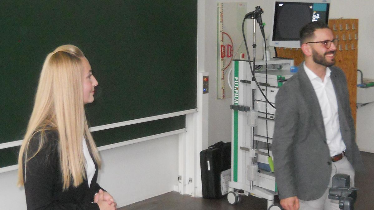 Im Bild: Maria Grötsch und Klaus Geißelsöder, beides Absolventen und mittlerweile in zwei Unternehmen im Bereich Endoskopie tätig.