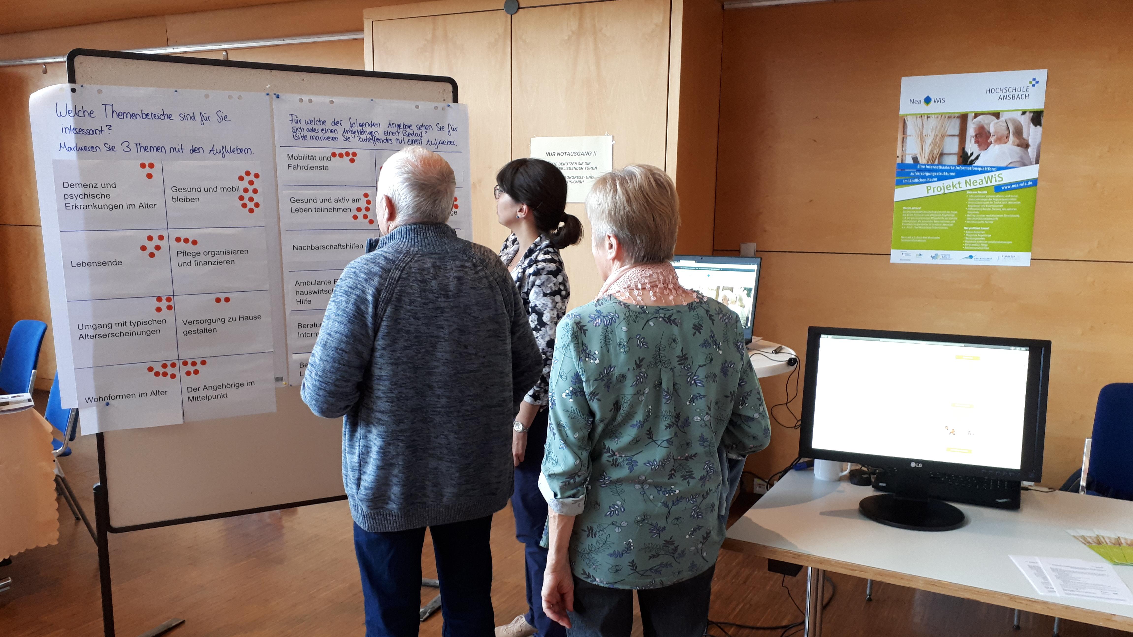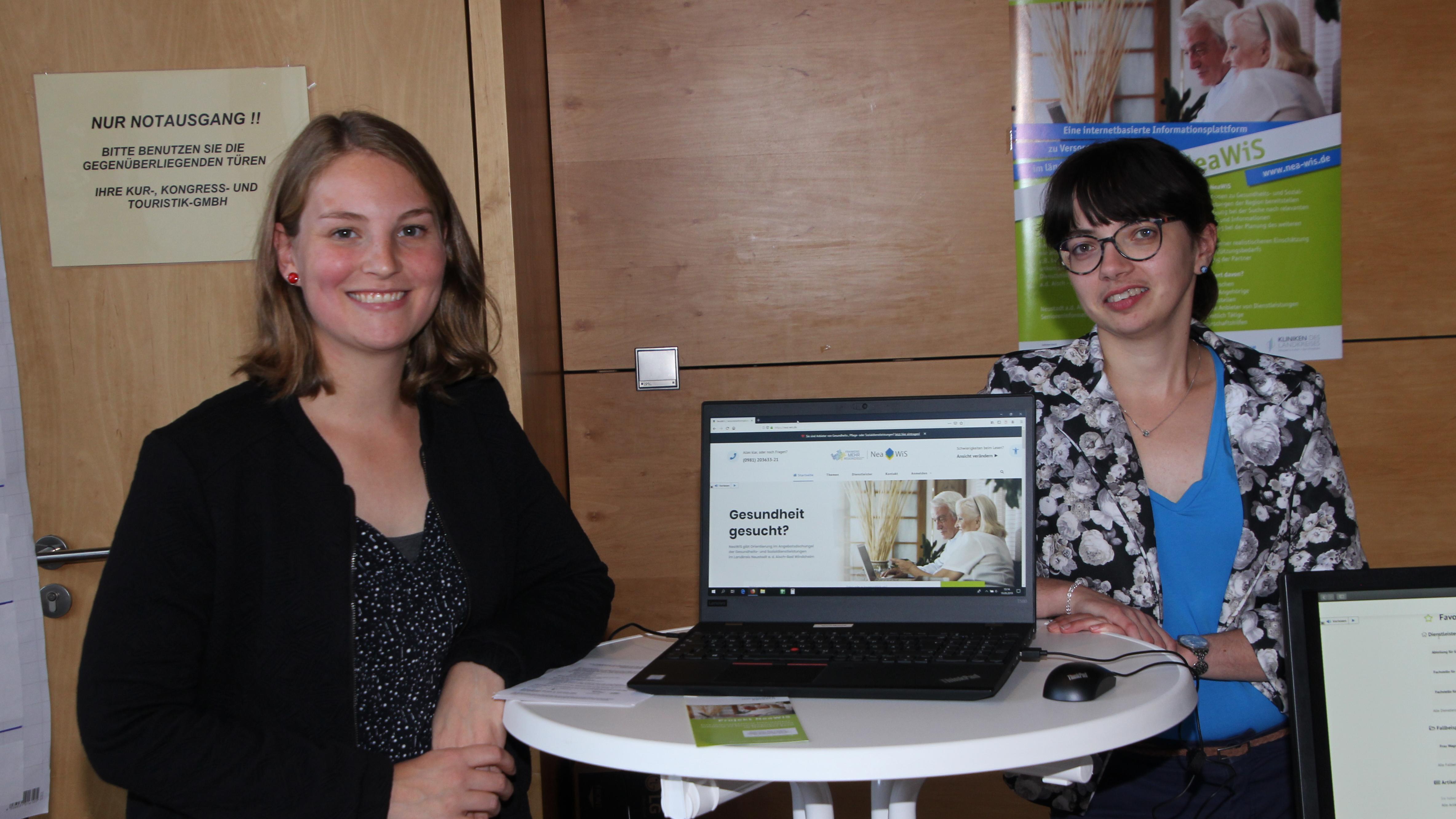 Die Mitarbeiterinnen des Bundesprojektes NeaWiS an der Hochschule Ansbach, Leonie Hugo (Projektkoordination) und Dunja Zöller (Wissenschaftliche Mitarbeit), stellten kürzlich das Portal www.nea-wis.de auf dem Seniorentag in Bad Windsheim vor. Seit Mai kann man sich dort über die Versorgungs- und Gesundheitsangebote im Landkreis Neustadt a.d. Aisch - Bad Windsheim für Ältere und pflegende Angehörige informieren.