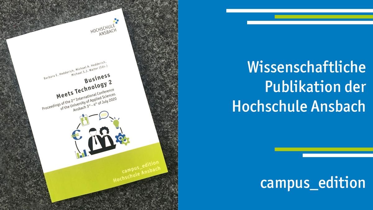 Nun ist der aktuelle Band "Business Meets Technology 2 - Proceedings of the 2nd International Conference of the University of Applied Sciences Ansbach 3rd - 4th of July 2020" - herausgegeben von Prof. Dr. Barbara Hedderich (Studiengang Betriebswirtschaft), Michael Hedderich sowie Prof. Dr.-Ing. Michael Walter (Studiengang Angewandte Ingenieurwissenschaften) - erschienen.
