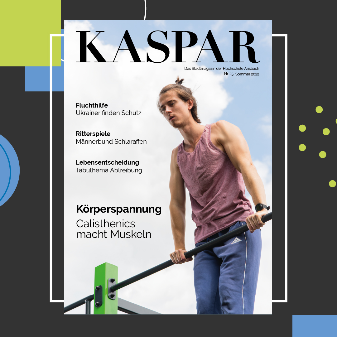 Zum 25. Mal erscheint in diesem Semester der KASPAR, das Stadtmagazin der Hochschule Ansbach. Das Magazin wird seit zwölf Jahren jedes Semester von Studierenden der Fakultät Medien unter der Leitung von Prof. Sabine Böhne-Di Leo produziert.