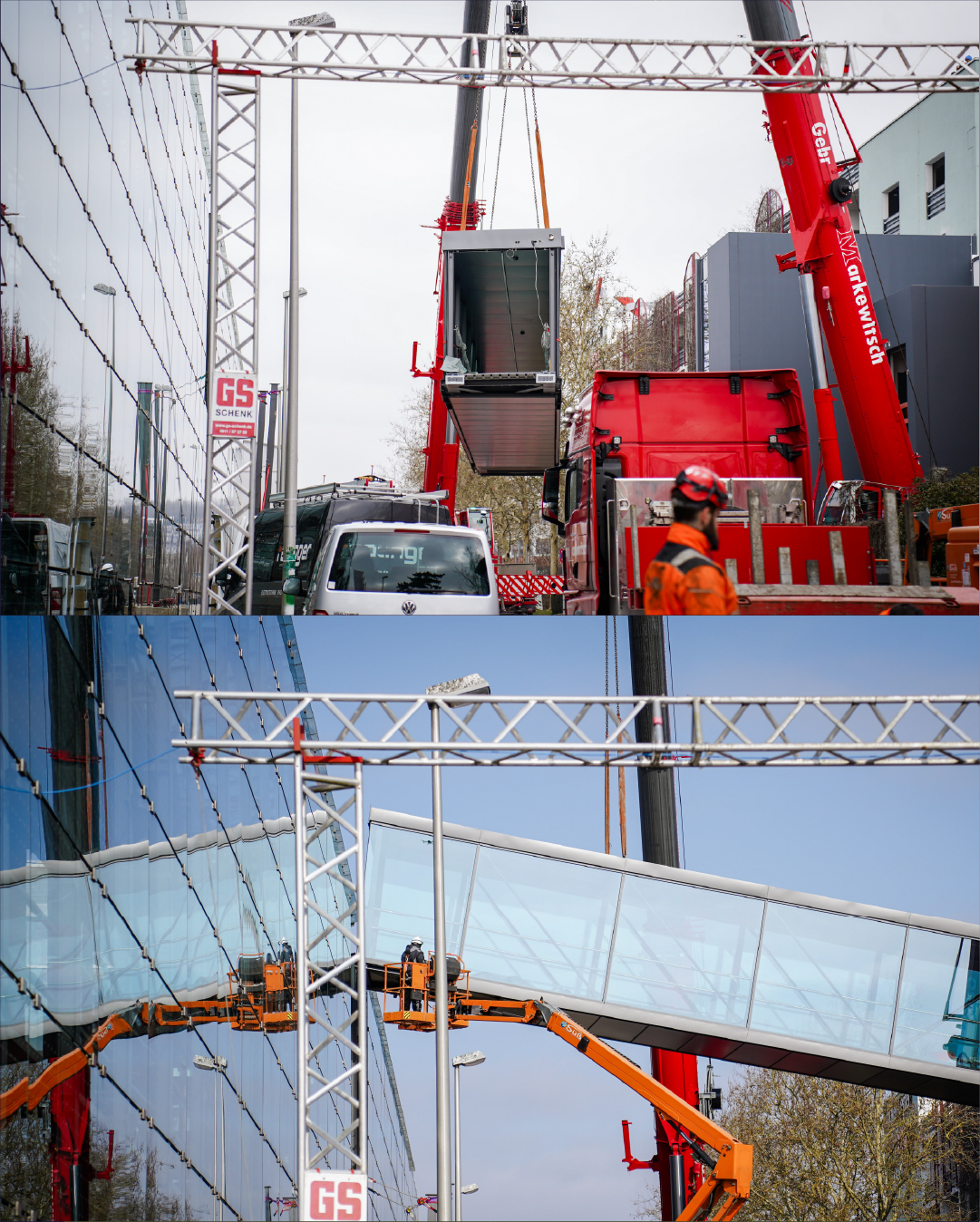 Gestern wurde die Brücke eingehoben, die das Gebäude 92 der Hochschule Ansbach mit dem Brücken-Center verbindet. Damit geht ein spannender Abschnitt der Umgestaltung zu Ende und der Umzug in die neuen Räumlichkeiten im Einkaufszentrum steht kurz bevor.