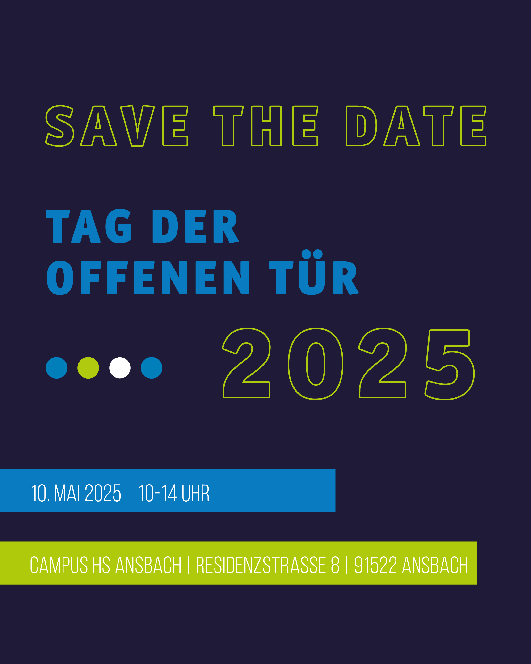Am 10. Mai 2025 lädt die Hochschule Ansbach von 10 bis 14 Uhr herzlich dazu ein, den Campus kennenzulernen und Studiengänge hautnah zu erleben!