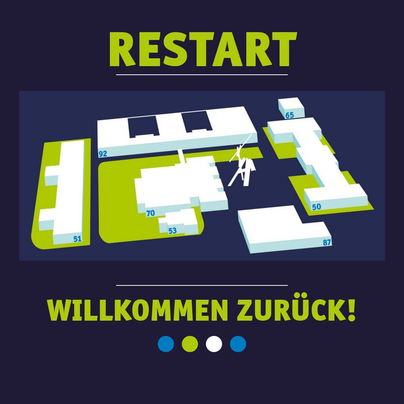Am Dienstag, 1. Oktober, geht es endlich wieder los! Wir begrüßen die Studierenden mit "restart" zurück an der Hochschule.