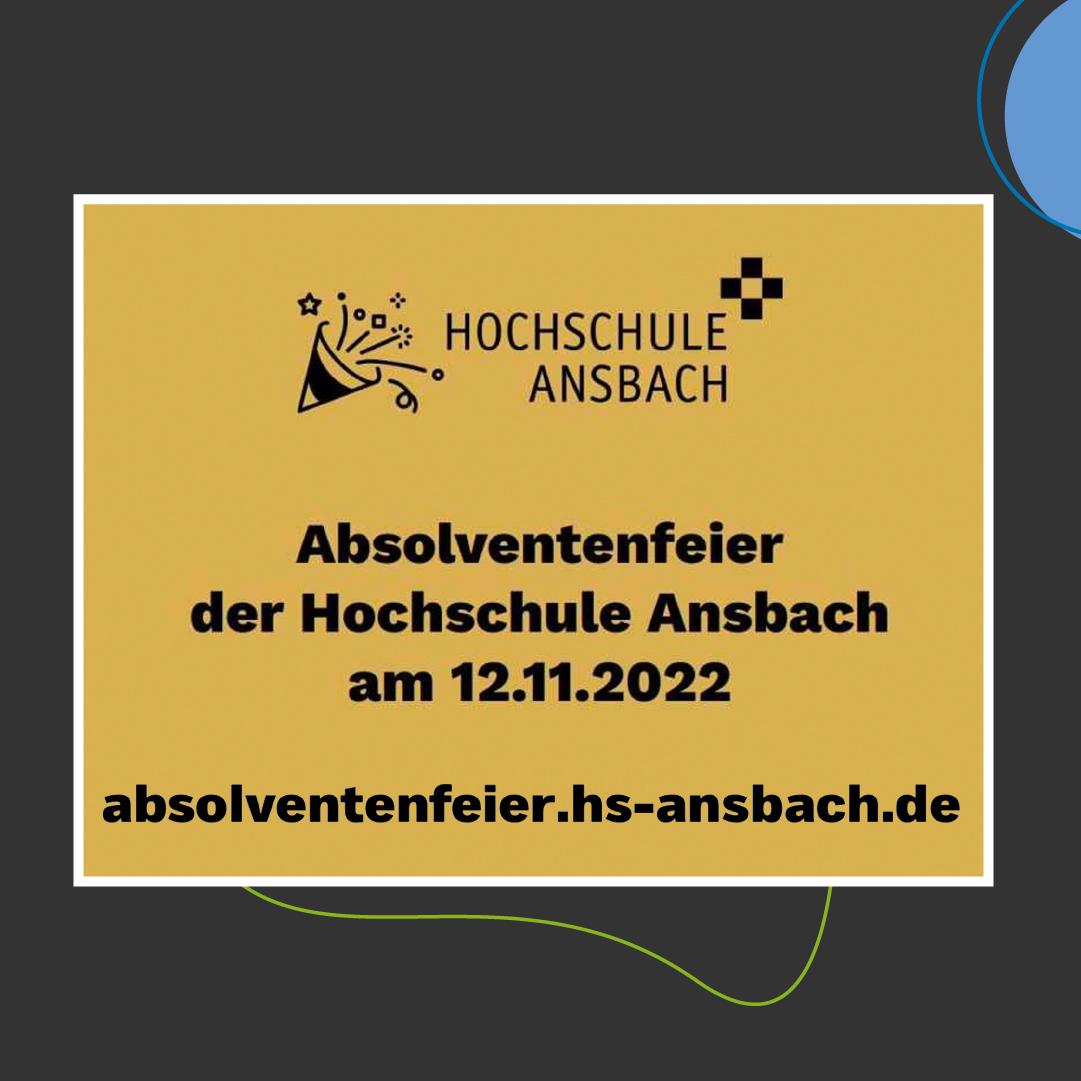 Die Absolventenfeier der Hochschule Ansbach findet wieder statt. Am 12. November feiern wir unsere Alumni der Abschlussjahrgänge 2020 bis 2022.