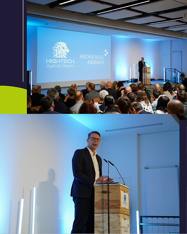 Bayerns Wissenschaftsminister Markus Blume (MdL): „Wir feiern die größte Campus-Erweiterung in der Geschichte der Hochschule Ansbach. Unsere fränkische Premium-Hochschule ist auf der Erfolgsspur. Und: Erfolg braucht Platz. Die Erweiterung im Brücken-Center ist ein Brückenschlag in die Zukunft. Durch unsere Hightech-Agenda Bayern haben wir 560 Studienplätze und 26 Professuren zusätzlich an der Hochschule eingerichtet – seitdem brummt es richtig: Wir haben bei Studierenden einen Anstieg um 33 Prozent. Das Investment in die neuen Räume ist auch ein Investment in die Zukunft der Region: Wissen aus der Hochschule findet den Weg in die Praxis – das bedeutet Wertschöpfung und Wohlstand. Herzlichen Dank an den Präsidenten Prof. Dr.-Ing. Sascha Müller-Feuerstein und sein Team für den tollen Antrieb. Der ,Ansbach-Spirit’ wird uns weiter in Atem halten – und das ist gut so!“