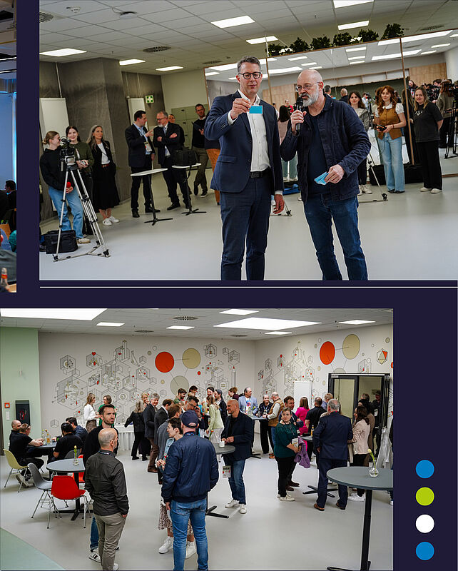 Im Rahmen einer feierlichen Eröffnung verschaffte sich Staatsminister Markus Blume (MdL) als Ehrengast gemeinsam mit Hochschulpräsident Prof. Dr.-Ing. Sascha Müller-Feuerstein und Stephan Hof, Zentralgeschäftsführer der DV Immobilien Management GmbH, einen persönlichen Eindruck von den neuen Räumlichkeiten. Dabei zeigte er sich beeindruckt von der modernen Lern- und Arbeitsumgebung.