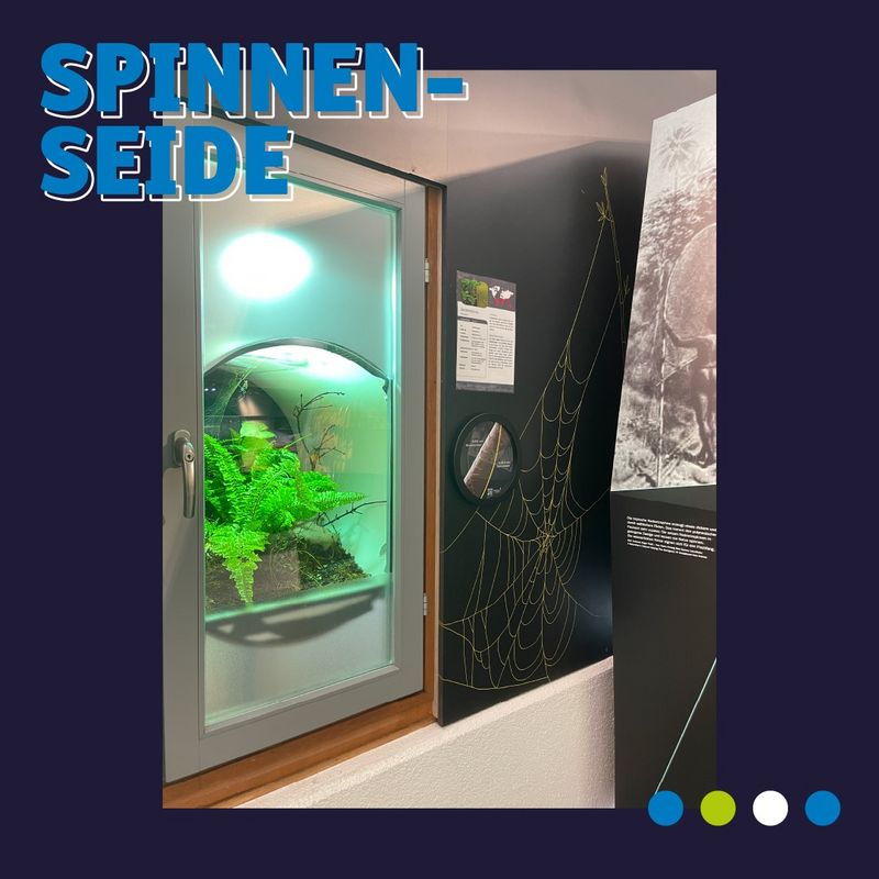 Spinnenseide ist reißfester als Stahl - obwohl sie dünner als ein menschliches Haar ist! Dank der Raster-Elektronen-Mikroskop-Aufnahme von nanoscopic (Hochschule Ansbach) können diese Dimensionen nun im Bionicum Nürnberg betrachtet werden.