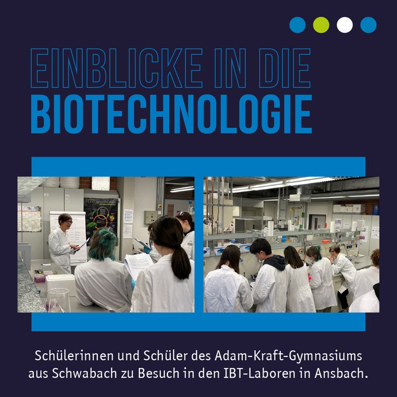 Bereits davor waren 60 Biologie-Schülerinnen und -Schüler der elften Klassen in den IBT-Laboren in Ansbach zu Gast. In sechs verschiedenen Workshops von Bubble Tea bis Gentechnik konnten die Nachwuchswissenschaftlerinnen und -wissenschaftler Biotechnologie in all ihren Facetten ausprobieren. „Das Programm ist absolut großartig“, freute sich Biologielehrerin Ute Halbig. „So ein Equipment haben wir an der Schule natürlich nicht.“