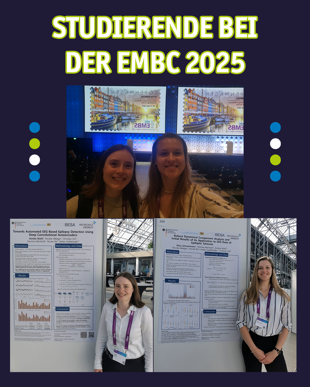 Zwei Studierende haben vor kurzem die Hochschule Ansbach auf internationaler Ebene vertreten. Bei der 47. IEEE Engineering in Medicine & Biology Conference (EMBC 2025) hatten die APR-Masterstudentin Nina Lämmermann und die wissenschaftliche Mitarbeiterin Annika Stiehl die Gelegenheit, ihre Forschungsarbeiten im Bereich der Epilepsieerkennung zu präsentieren.