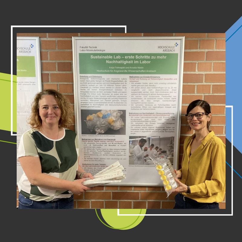 Biotechnologin Katja Frohnapfel und Professorin Annette Martin aus den Studiengängen Industrielle Biotechnologie (IBT) und Applied Biotechnology (ABI) möchten diese Maßnahmen aus dem Alltag in Zukunft mehr in ihre Laborarbeit einfließen lassen: Gemeinsam mit Studierenden soll der Fokus auf nachhaltiges Labormanagement gerichtet werden. Hierfür möchten sie den Plastikmüll reduzieren, Energie einsparen, Ressourcen schonen und sich für mehr Tierwohl einsetzten. So nutzen sie beispielsweise schon Zellkultur-basierte Tests als Alternative zu Tierversuchen.