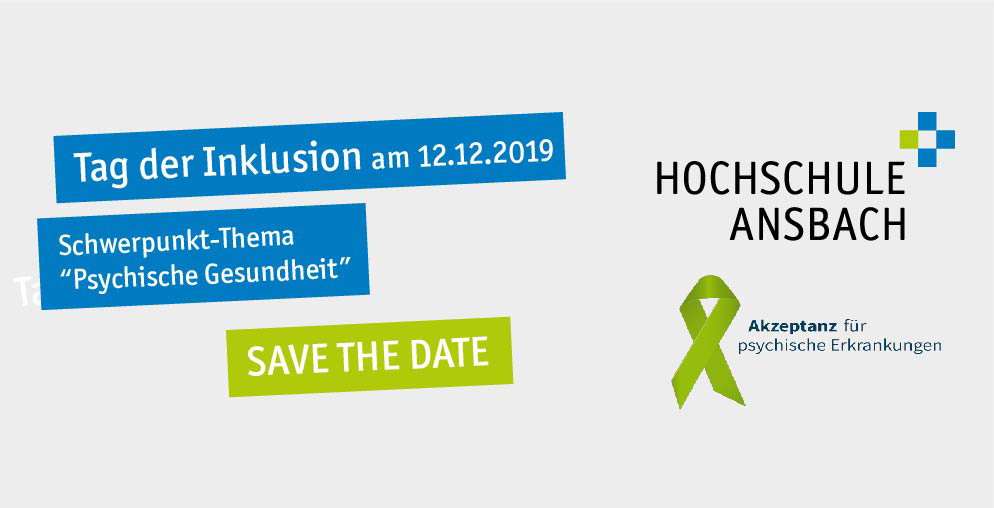 Am 12. Dezember diesen Jahres findet auch wieder ein „Tag der Inklusion“ an der Hochschule Ansbach statt, der diesmal im Zeichen der psychischen Gesundheit steht. Verschiedene Aktionen auf dem Campus der Hochschule werden sich dem Thema widmen. Weitere Informationen hierzu folgen in Kürze.
