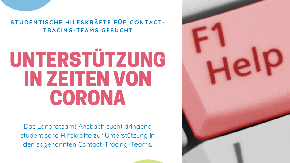 Das Landratsamt Ansbach sucht dringend studentische Hilfskräfte zur Unterstützung in den sogenannten Contact-Tracing-Teams. Tätigkeitsschwerpunkte dieser Teams sind u.a.: