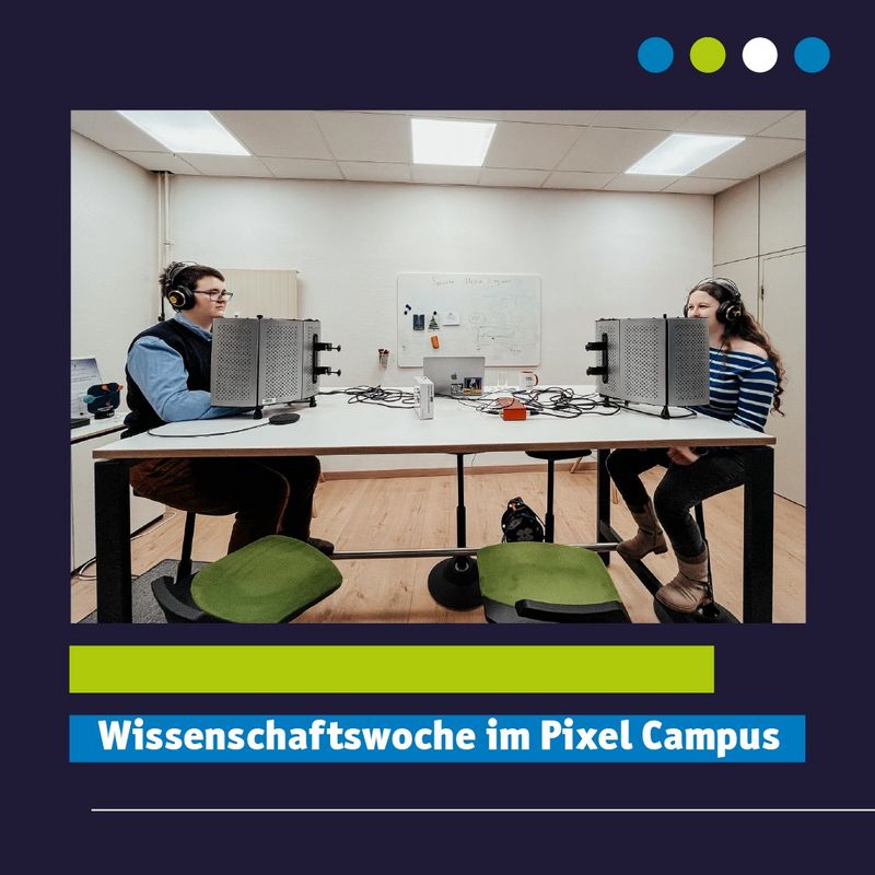 Im Rahmen der Wissenschaftswoche durfte der Pixel Campus Schülerinnen und Schüler der 11. Jahrgangsstufe des Carolinum Gymnasiums begrüßen. Ein Workshop zum Thema Podcast hatte zum Ziel, den physikalischen Schwerpunkt der Schülerinnen und Schüler mit medialen Inhalten zu verbinden.