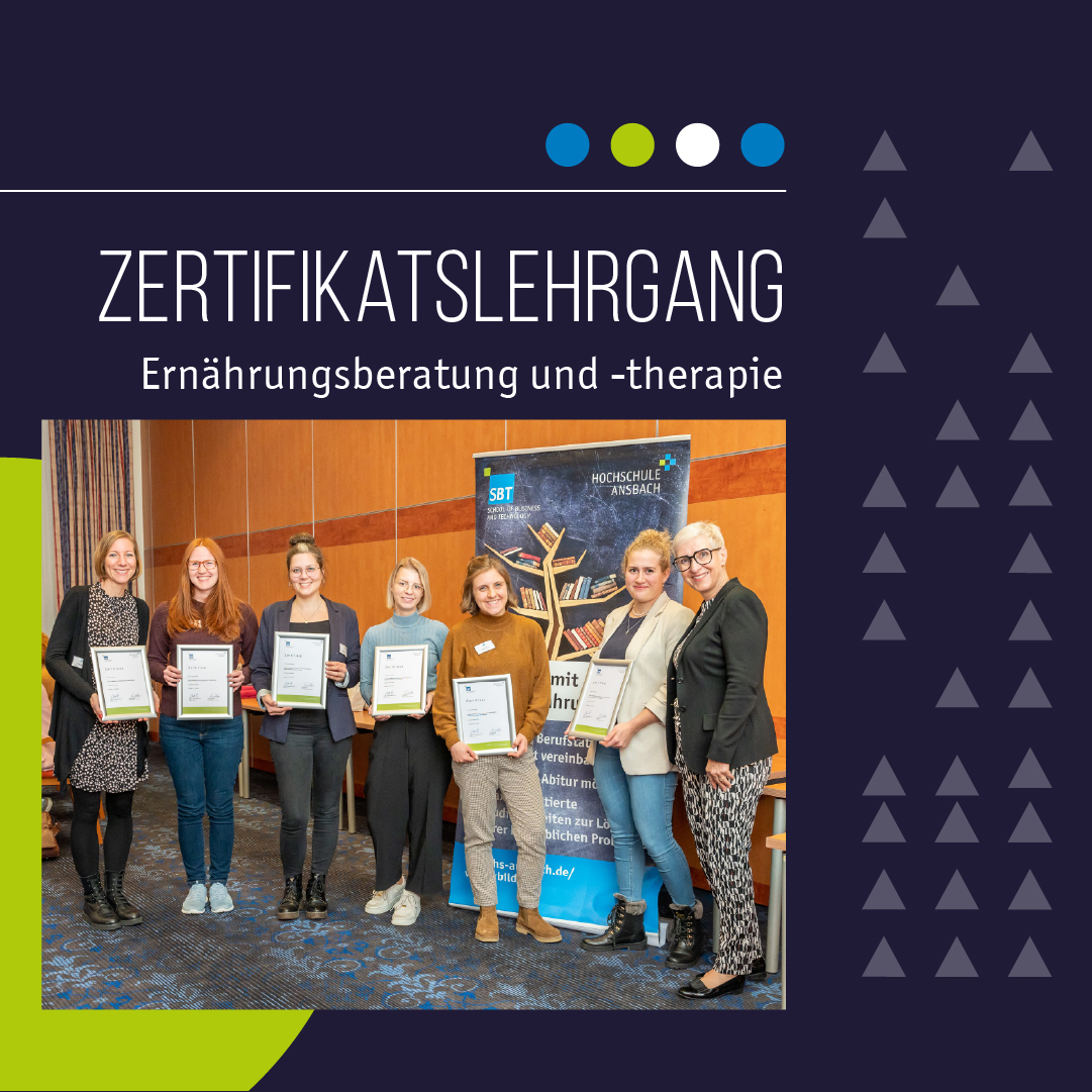 Seit 2021 bietet die School of Business and Technology (SBT) der Hochschule Ansbach in Kooperation mit der DR AMBROSIUS Akademie den Zertifikatslehrgang „Ernährungsberatung und -therapie“ an. Unser Bestreben als Hochschule, zertifizierte Fortbildungsmodule anzubieten und die Gesundheitsförderung stärker in den Blick der Lehre zu bringen, legte die Grundlage für die Kooperation.