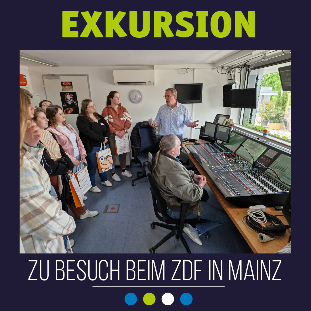 Am 12. Juni war es wieder so weit: für Studierende des Technikschwerpunkts im Studiengang Multimedia und Kommunikation (MUK) ging es auf Exkursion in die Technikzentrale des ZDF in Mainz.