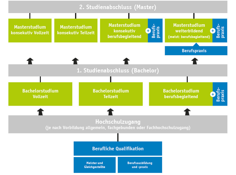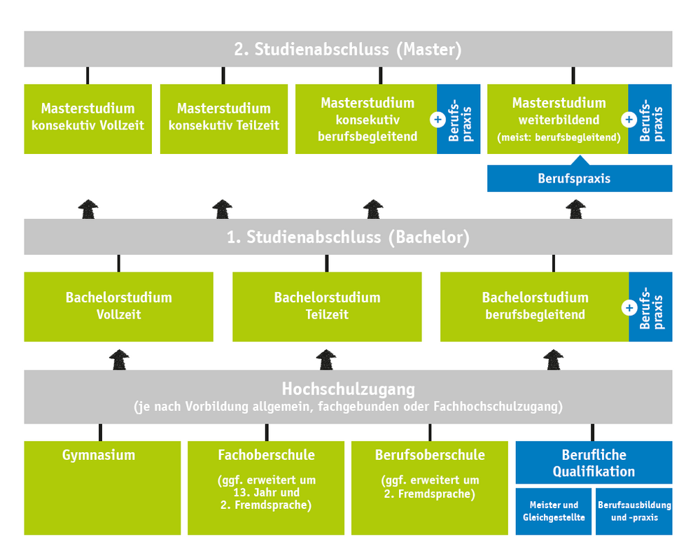 Abitur oder Fachabitur sind die bekanntesten Hochschulzugangsberechtigungen. Aber auch ohne Abitur können beruflich Qualifizierte bestimmte Studiengänge studieren! Dafür ist eine abgeschlossene Berufsausbildung plus 3 Jahre Berufserfahrung oder eine Fortbildungsprüfung wie z.B. Techniker, Meister, Betriebswirt etc. erforderlich.